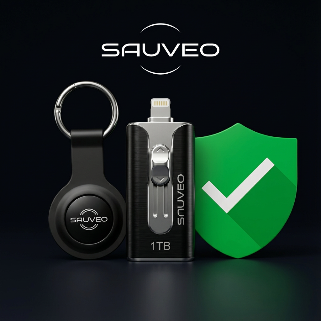 Contrairement au stockage en ligne qui peut être vulnérable aux piratages ou aux fuites de données, Sauveo garde vos fichiers physiquement avec vous.