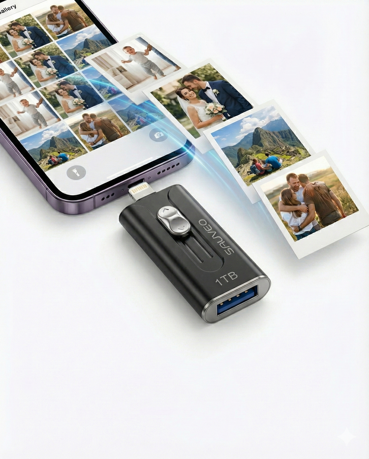 Sauveo utilise la technologie USB 3.0 haute performance avec des vitesses allant jusqu'à 110 Mo/s en lecture et 90 Mo/s en écriture. Cela signifie que vous pouvez sauvegarder des milliers de photos en quelques minutes seulement.